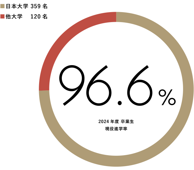 2024年度は卒業生496名のうち、359名(約72%)の生徒が日本大学への進学を決めました。
