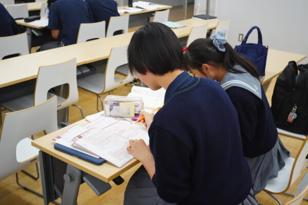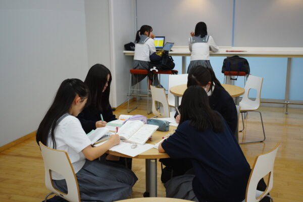 本日も多くの生徒が生徒ホールや各階の自習スペース,図書室や自習室をを利用して放課後の自習に取り組んでいました。