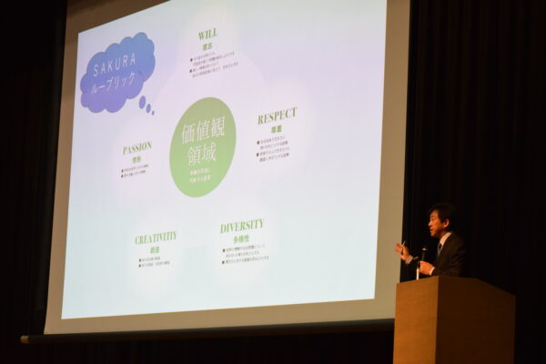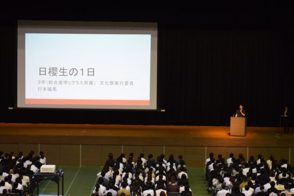 今年度の学校説明会では,総合進学クラスに在籍し,生徒会に所属する行本 颯馬さんに櫻丘生の一日と題し,普段の学校生活の様子や,日大櫻丘に入学してどのように成長できたかなどプレゼンテーションをしてもらいました。