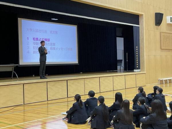 令和8年1月8日(木)、大学受験を控えた3年生を激励するため、大学入試壮行会を実施しました。