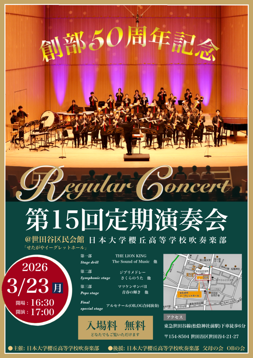 創部50周年記念 第15回定期演奏会のお知らせ
