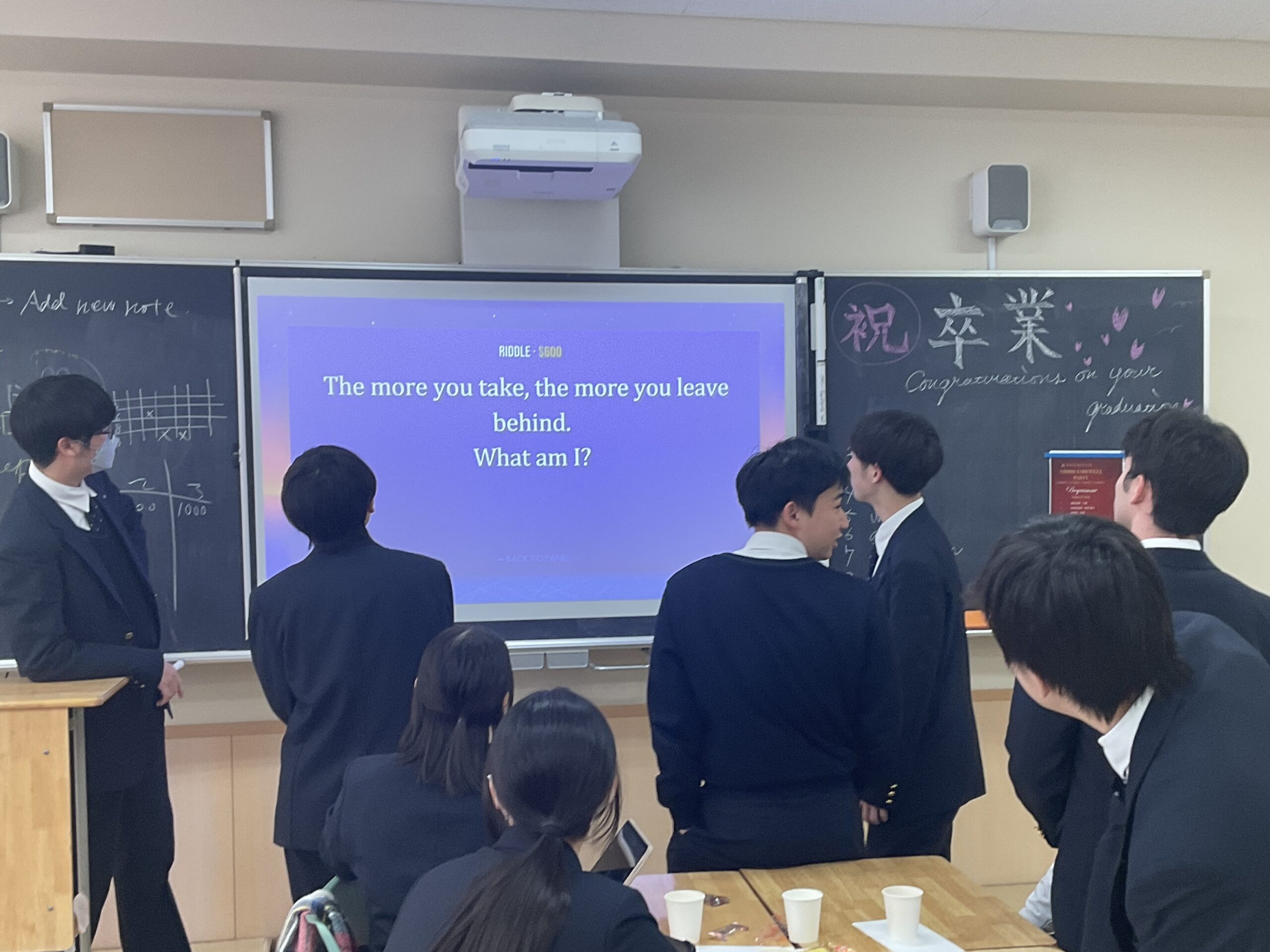 三送会では、Kahoot、Jeopardy、Word Game、英語クイズ(リドル)などのアクティビティを行い、楽しく英語に親しみながら、卒業する3年生への感謝の気持ちを伝えました。また、卒業生によるスピーチも行われ、後輩たちにとって大きな刺激となりました。
