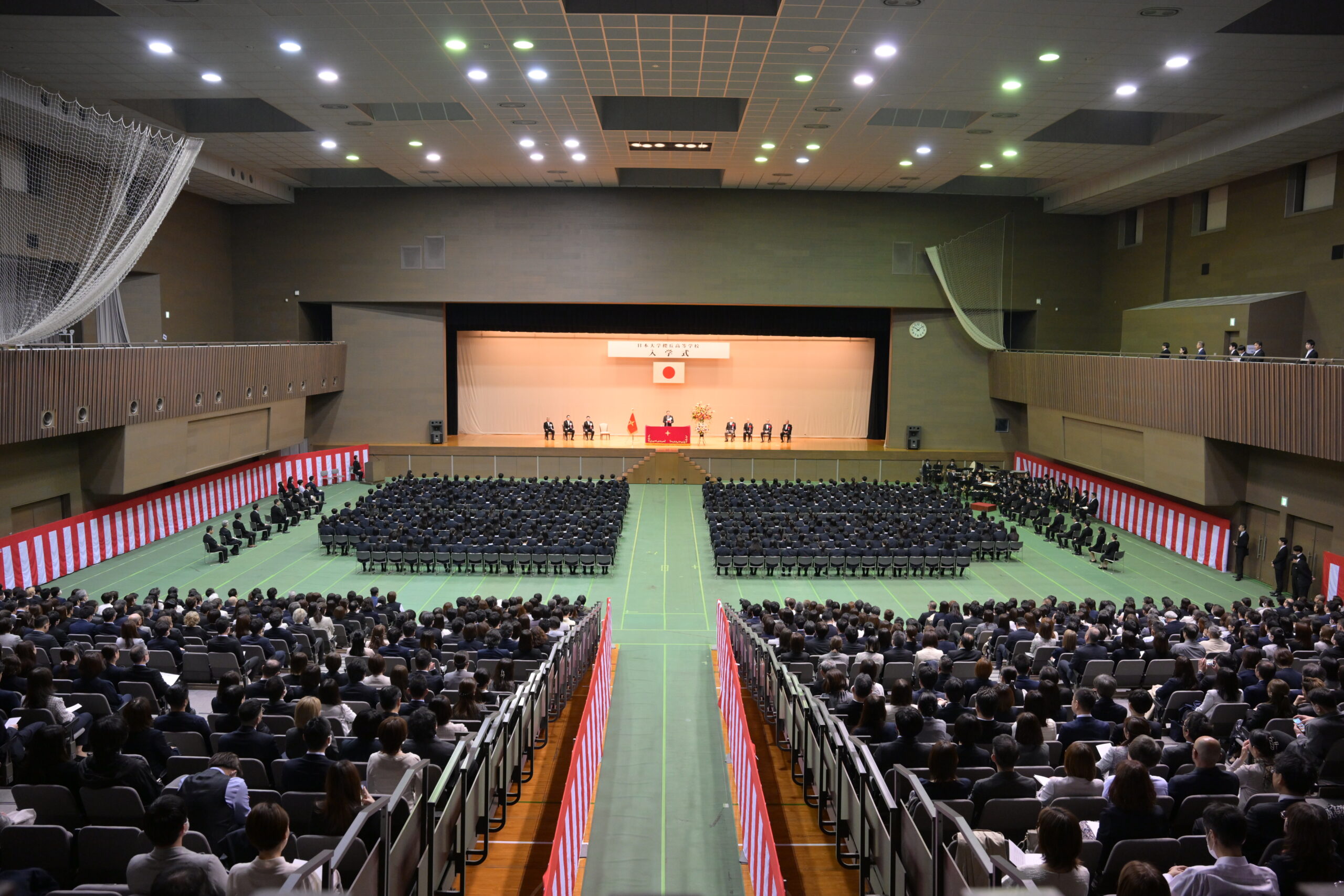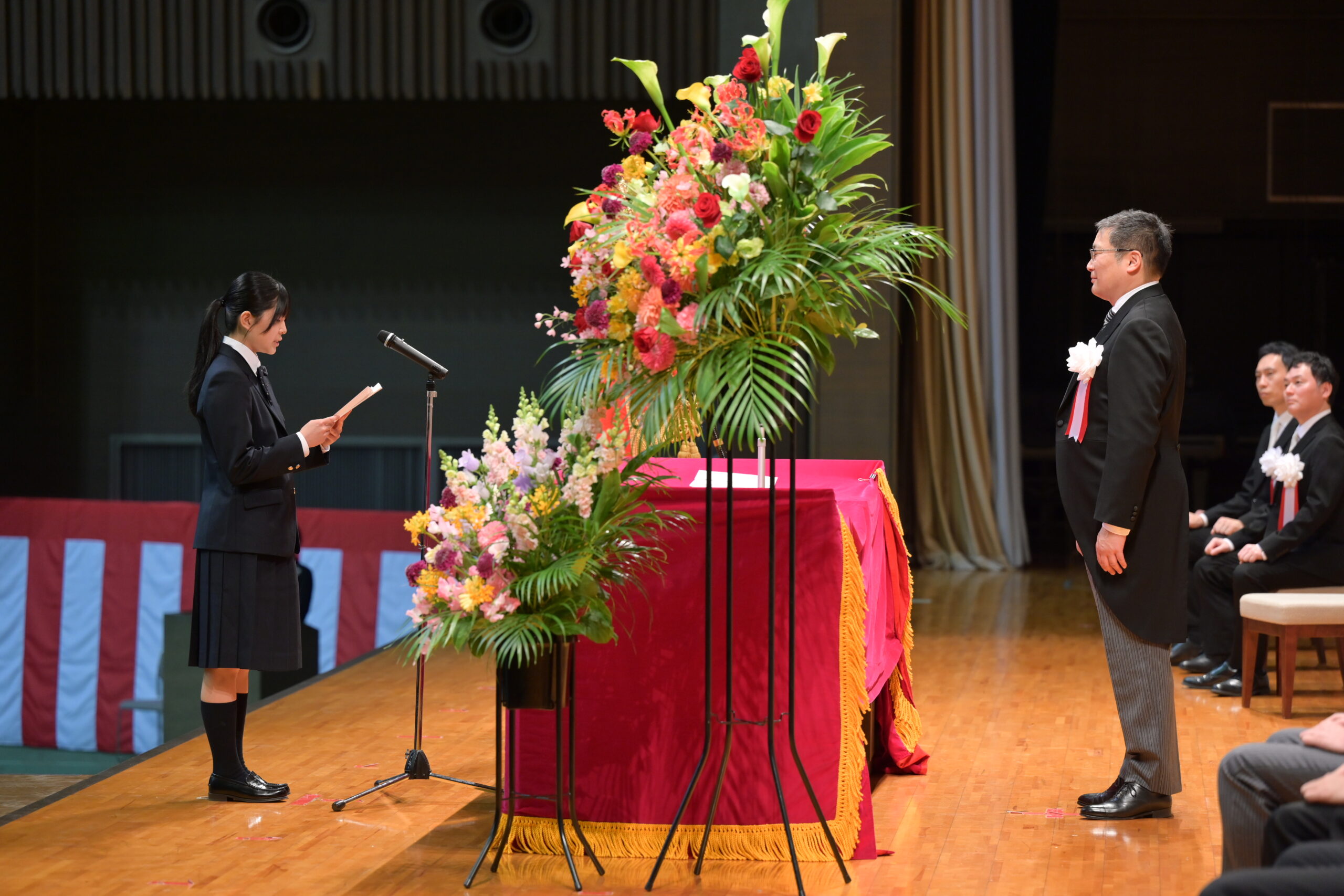 入学式では,今年度より着任されました 杉森 知也 学校長や 岡 隆 文理学部長からお祝いの言葉が贈られ,生徒会長からも歓迎の言葉が述べられました。