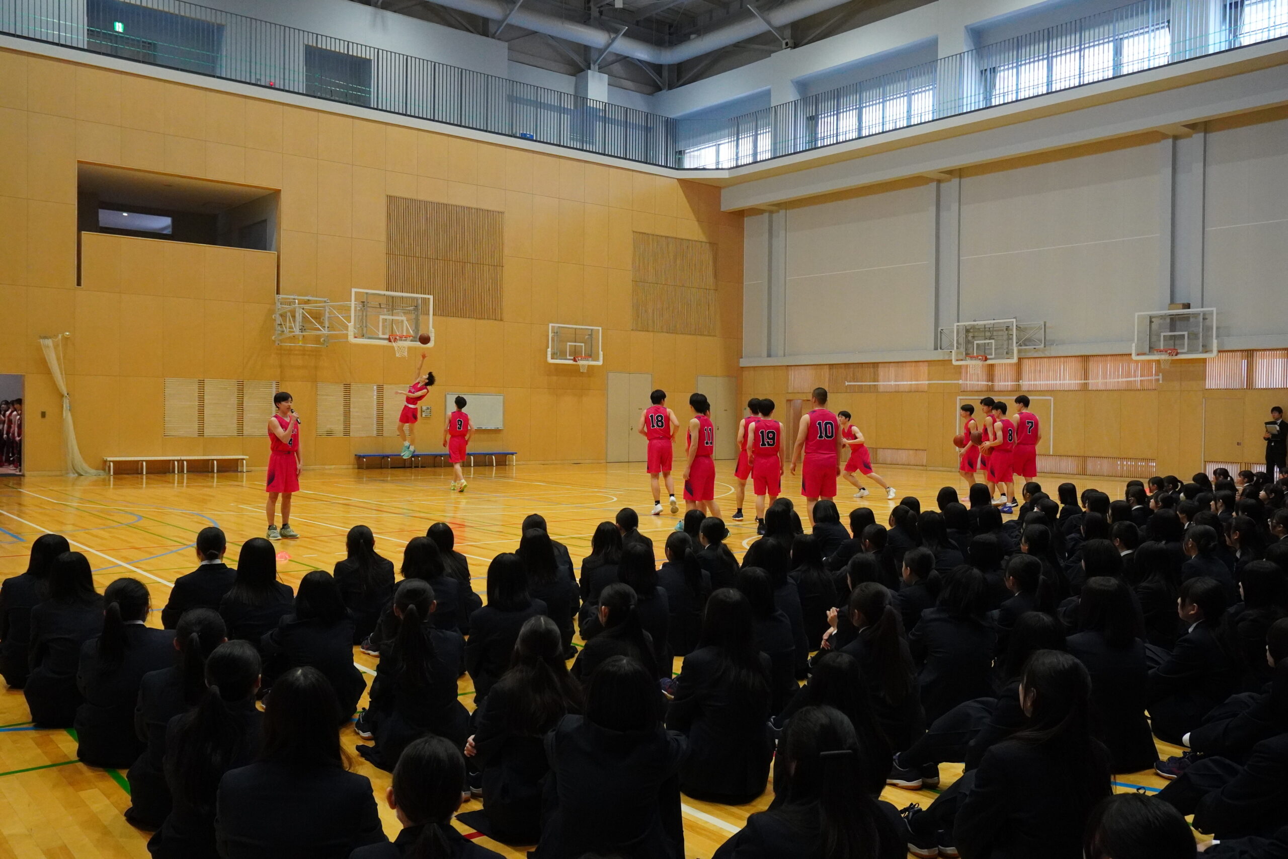 1年生のHRでは各部活が作成した部活動紹介動画を視聴しました。その後体育館に再度移動し,実演を行う部活の紹介もありました。