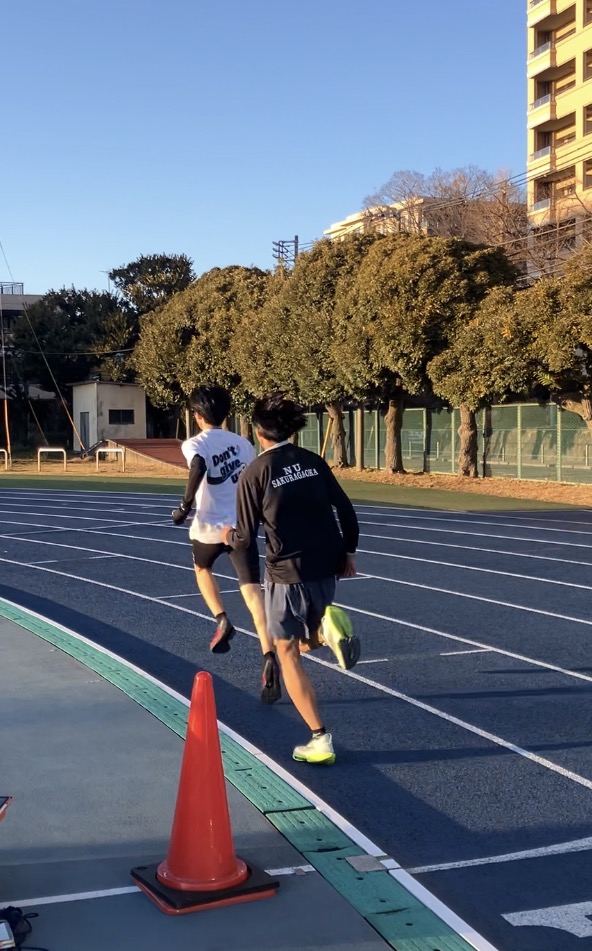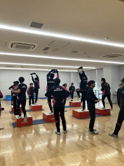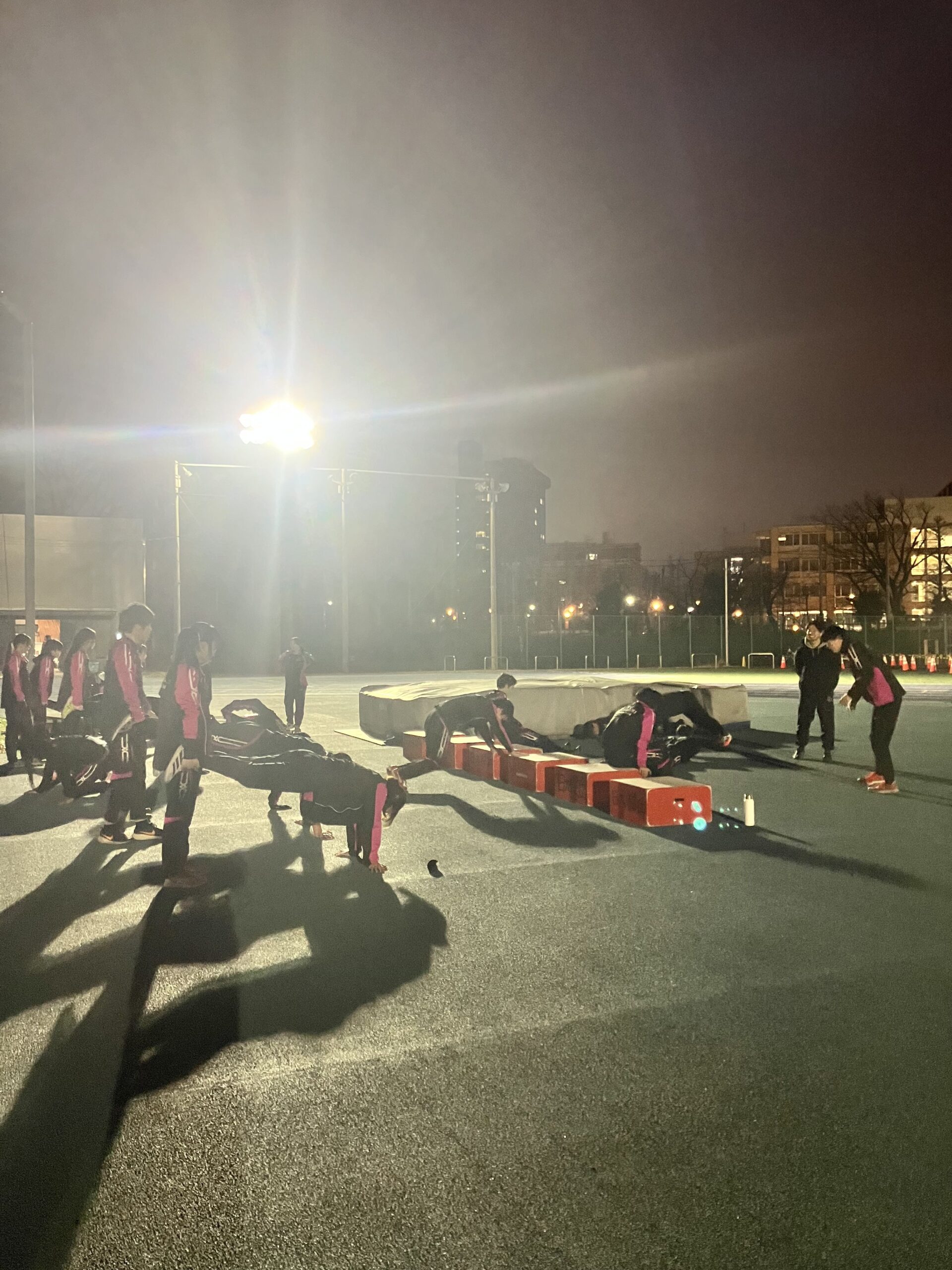 冬練のウォーミングアップでは,今年は全ブロックでサーキットトレーニング,ハードルドリル等,ベースアップを行っています。