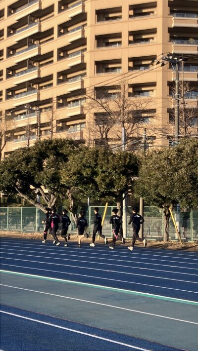 長距離ブロックのペース走の様子です。冬季練習開始時から着実に距離を積み重ねて,安定して走れるようになってきました。